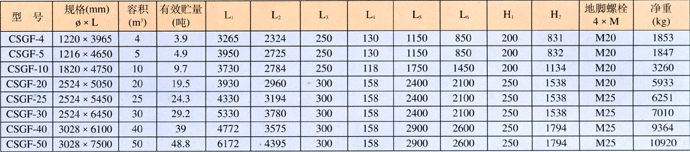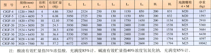 鋼制酸貯罐規(guī)格及外型尺寸(毫米)