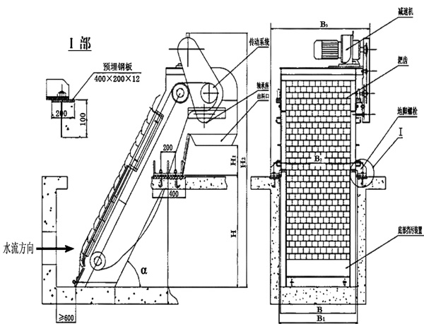 1、訂貨時(shí),請(qǐng)?zhí)峁┣?、渠深、安裝角度、耙齒間隙及出料高度等參數(shù);