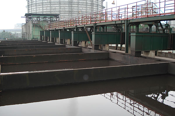 組合式斜板沉淀器有逆流和橫流兩種類型,用戶可以根據不同情況加以選用。對于煉鋼廠轉爐煙氣凈化污水處理而言,由于污水懸浮物含量高,溫度變化范圍大,為消除因溫度變化而產生的異重流影響,選用橫流組合式斜板沉淀器較為理想。若采用由全自動干粉投加絮凝劑裝置(電磁式凝聚器)-斜板沉淀器-螺旋輸泥機-壓縮空氣提升-脫水機所組成的新工藝來處理上述污水,則經處理后的污水懸浮物含量可<30-100ml/l,污泥含水率<25~30%,是較為理想的水處理工藝和水處理設備。